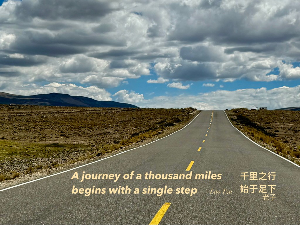 Lao Tzu, the Chinese philosopher and writer, once wrote, “千里之行,始于足下,” which translates roughly to, “A journey of a thousand miles begins with a single step.” So simple: a thousand miles seems daunting, but just take the first step, and you’re on your way. So go! Begin!